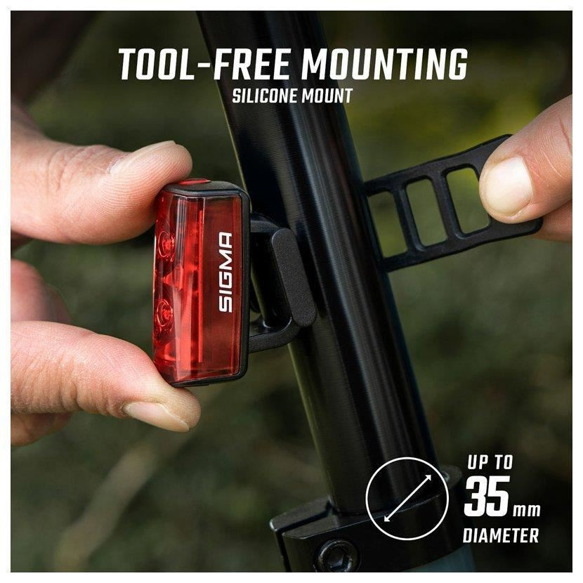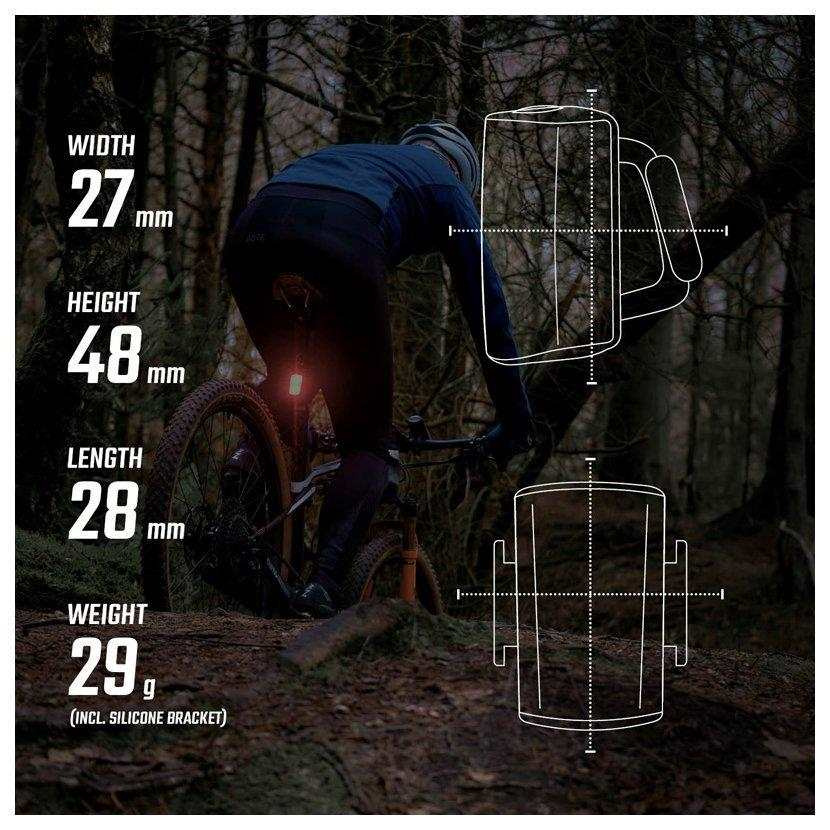 Světlo se zapíná dvojitým stisknutím. Velké tlačítko zapnutí lze snadno ovládat i v rukavicích. Tato funkce zajistí, že zadní světlo lze bez problémů schovat do kapsy dresu nebo do batohu, aniž by se nedopatřením rozsvítilo.