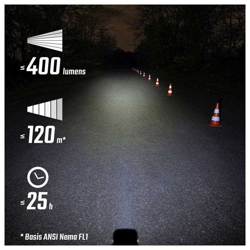 - 5 světelných režimů: High (400 lm), Mid (200 lm), Low (100 lm), Night Flashing (300/100 lm), Day Flashing (100 lm)
