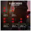 - 5 světelných režimů: High (25 lm), Low (5 lm), Day Flashing (80 lm), Night Flashing (15 lm), Eco Flashing (5 lm)