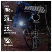 - 5 světelných režimů: High (25 lm), Low (5 lm), Day Flashing (80 lm), Night Flashing (15 lm), Eco Flashing (5 lm)