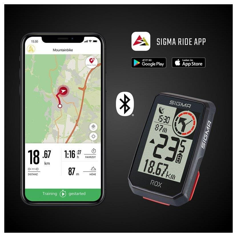 Prostřednictvím Bluetooth lze data z cyklopočítače odesílat do smartphone a v aplikaci SIGMA RIDE je ukládat a vyhodnocovat. Nejdůležitější data a statistiky je možné přehledně uspořádat do barevných datových polí, rychle je zobrazit na displeji a pohodlně vyhodnotit.