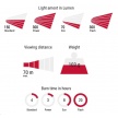 Doba svícení: 3 h intenzivní režim / 4 h standardní / 8 h ekonomický / 20 h blikání