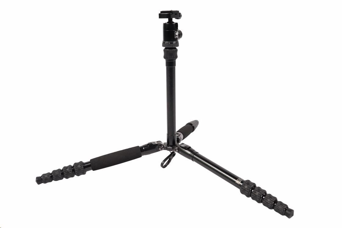 Počet vodováh: 1 Středový sloupek: Ano Způsob uchycení hlavy: 3/8", 1/4" Typ zámku nohou: Twist Lock Sekce nohou: 5 Rychloupínání (quick release): Ano Patky stativu: Guma Průměr nohy (mm): 22 mm Typ hlavy: Kulová hlava Maximální výška nohou (mm): 1230 mm Materiál: Hliník Maximální zatížení (kg): 5 kg Minimální výška (mm): 80 mm Složená délka: 315 mm Maximální výška (mm): 1380 mm Barva: Černá Použití: Kompakt s výměnným objektivem, DSLR, CSC Hmotnost (g): 1050 g.