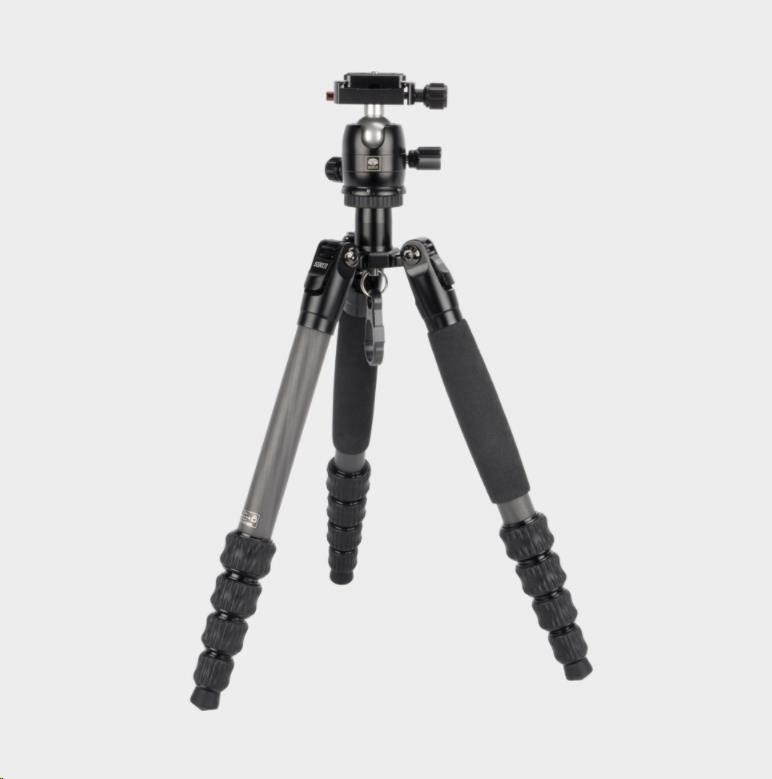 Lehký, kompaktní a přesto extrémně stabilní stativ z uhlíkových vláken s 5 sekcemi nohou a kulovou hlavou. Ideální na cestování.