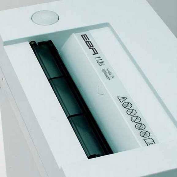 Skartovač EBA 1126 S 4 mmSkartovaný materiál:Papír, Sponky; Způsob řezu:Podélný; Stupeň utajení:2.