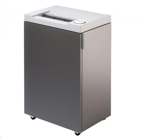 Komfortní obsluha. Výkonný skartovač se vstupní šířkou 240 mm pro intezivní využití. Nově integrována světelná indikace zátěže stroje. Kapacita skartace až 21 listů 70g/m2 papíru v řezu 4 mm. Popis: „SPS“ – patentované bezpečnostní a ochranné funkce: elektronicky řízená jistící klapka v místě vstupu, automatický zpětný chod při ucpání papírem a následné vypnutí, automatické vypnutí po naplnění odpadní nádoby, elektronická kontrola uzavření dvířek podstavy, dvoustupňové jištění motoru, úsporný režim „ZERO ENERGY“ (absolutní vypnutí odběru el. energie po 30 min ve stavu Stand-by). Vícefunkční přepínač „EASY-SWITCH“ s přehledným menu a barevnou světelnou signalizací provozu a indikací míry zátěže, automatická start/stop funkce pomocí optického senzoru, nože z tvrzené speciální oceli odolné vůči kancelářským sponkám a kreditním kartám, výkonný motor 390 W, vysoce kvalitní dřevěná skříňka (objem 50L) s odolným kováním a kolečky pro pojezd, mechanicky odolný snadno uchopitelný plastový odpadní koš objemu 35 L, vyrobeno v Německu. Rozměry (V x Š x H): 635×395×291 mm. Hmotnost: 21 kg..
