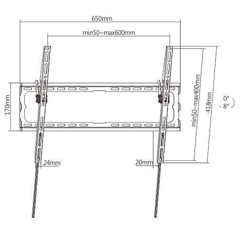 Sklopný držák Tv Fiber Mounts FM01Poctivý držák na televize 37-80" s možností náklonu 0° až -8°, VESA 100x100 až 600x400, vzdálenost od zdi 20mm, automatické zajištění Tv, ocelová konstrukce, instalační materiál, nosnost 45kg.