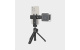 Jedním šroubem 1/4"-20 se stativ připevní k držáku chytrého telefonu, který má dva držáky cold shoe pro mikrofon, LED video světlo atd.