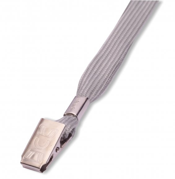 Šňůrka na krk s klipsem pro uchycení visačky. Lze použít na visačku s vyděrovaným podélným otvorem nebo se závěsem. Šířka 10 mm, délka 90 cm..