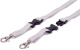Plochá šňůrka s karabinkou šedé barvy. Šířka sňůrky 20 mm, délka 90 cm..