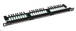 High-density 0,5U nestíněný patch panel CAT5E 24 portů s vyvazovací lištou, černý.