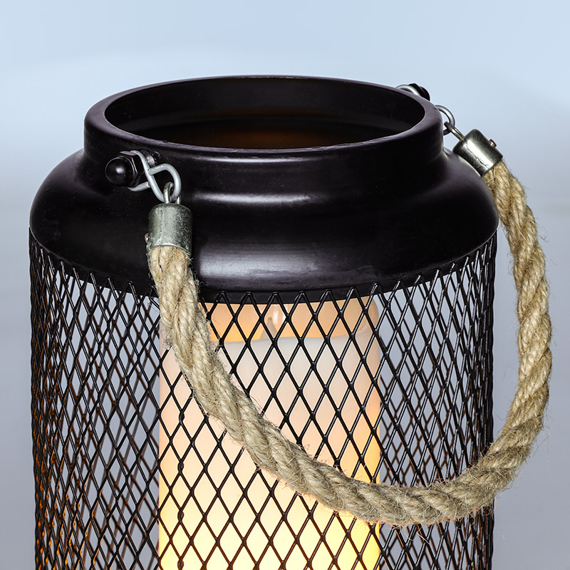 - kovová lucerna s LED svíčkou s mihotavým plamenem