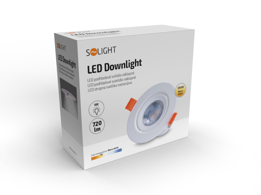 Solight LED podhledové světlo bodové, 5W, 400lm, 3000K, kulaté, bíléLED podhledové bodové svítidlo náklopné, světelný zdroj: 5W LED SMD, světelný tok: 400lm, teplota chromatičnosti: 3000K (teplá bílá), životnost LED: 20.000 hodin, úhel svícení: 38°, index podání barev Ra: >80, materiál: hliník + PC.