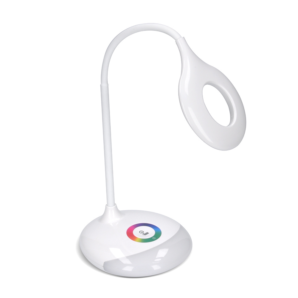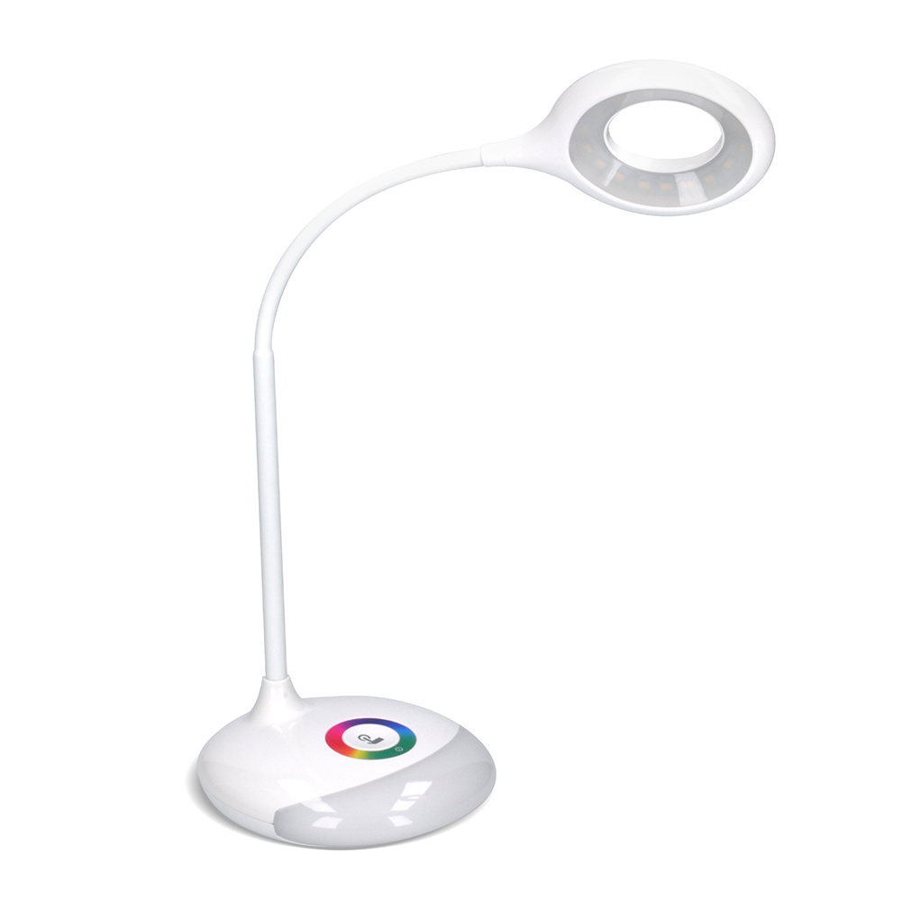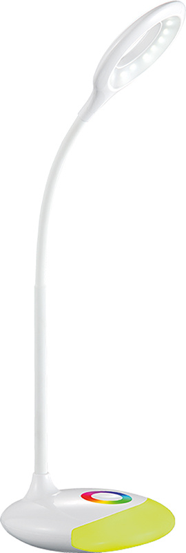 Solight LED stolní lampička nabíjecí, 5W, RGB podsvícení, stmívatelná, USB napájeníProdukty:Lampičky; Kategorie Svítidla:Interiér bytu; Barva těla svítidla:Bílá; Napájení:Vestavěný akumulátor.