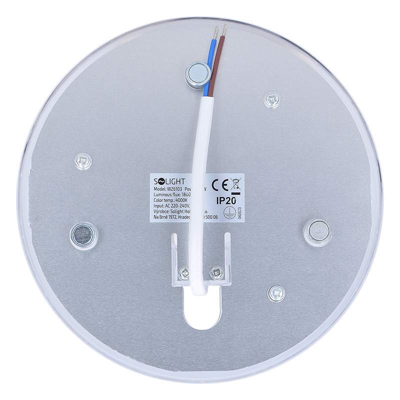 Solight LED světelný zdroj do stropních světel, 18W, 1800lm, 4000K, 155mmLED světelný zdroj určený do stropních svítidel s kovovou základnou. Světelný zdroj se k základně připevňuje pomocí v budovaných magnetů. spotřeba: 18W, světelný tok: 1800lm (odpovídá tradiční 115W žárovce), teplota chromatičnosti: 4000K (neutrální bílá), životnost LED: 25.000 hodin.