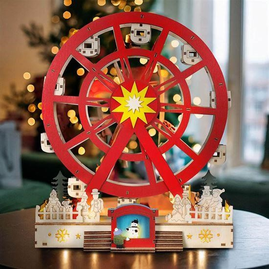 Solight LED vánoční kolotoč, otáčející se, 7x LED, 30cm, 2x AALED dřevěný vánoční kolotoč s elektro motorem, při zapnutí kolotoč svítí a otáčí se, počet LED diod: 7, barva světla: teplá bílá, režimy: zapnuto / vypnuto / časovač, časovač: 6hod zapnuto / 18hodin vypnuto, napájení: 2x AA baterie (nejsou součástí), výdrž baterií: cca 100hodin (v závislosti na kvalitě baterií), stupeň krytí: IP20 (vnitřní použití).
