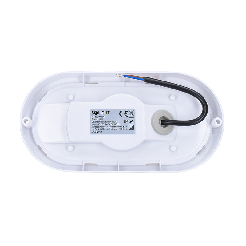 Solight LED venkovní osvětlení oválné, 13W, 910lm, 4000K, IP54, 21cmKompaktní LED svítidlo s příkonem 13 W a světelným tokem 910 lm je ideálním řešením pro interiérové i venkovní použití. Nabízí neutrální bílé světlo (4000K), vysoký index podání barev CRI>80 a úhel svícení 120°..