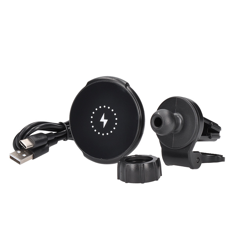 Solight magnetický držák MagSafe do auta s bezdrátovým nabíjením Qi 15WQi bezdrátové nabíjení do auta s maximálním výkonem 15W, uchycení telefonu systémem magnetického uchycení MagSafe, automatická detekce bezdrátového nabíjení, kompatibilní s Qi zařízeními.