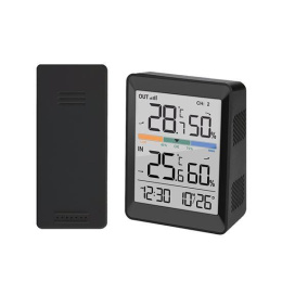 Solight teploměrMěření vnitřní teploty: -9,9°C až +50°C, měření venkovní teploty: -40°C až +70°C, měření vnitřní a venkovní vlhkosti: 20% až 95%, paměť minimálních a maximálních hodnot teploty a vlhkosti, indikátor vývoje teploty a vlhkosti, teplota ve stupních °C/°F, hodiny, budík, časový formát 12/24, rok, 1 bezdrátový senzor (součástí balení).
