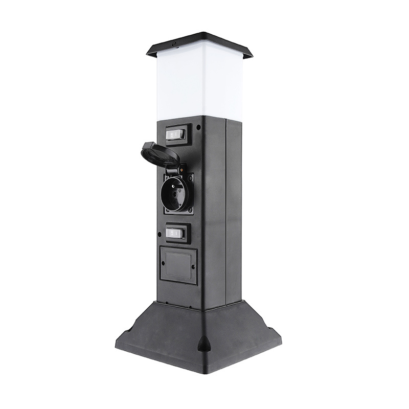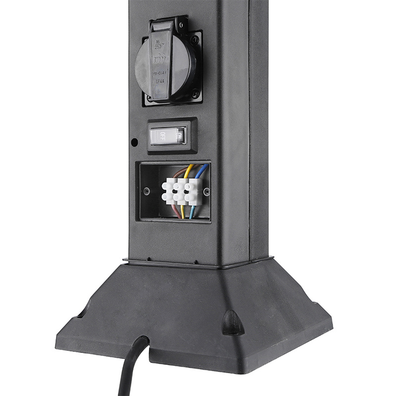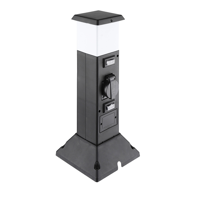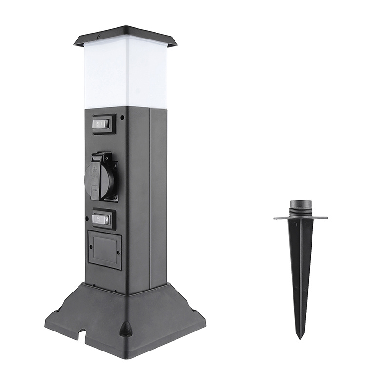 Solight zahradní sloupek IP44 s LED osvětlením, plast, 2 zásuvky, hranol, černýElektrický rozvodný sloupek s LED svítidlem, stabilní nebo přenosnýpřívod elektrické energie a osvětlení do venkovních prostor, základna s montážními otvory pro pevné povrchy, šroubovací hrot k zapíchnutí do měkkých povrchů, 2 zásuvky max. 16A, 3680W, dětské pojistky a samouzavíratelné krytky proti vlhkosti a prachu.