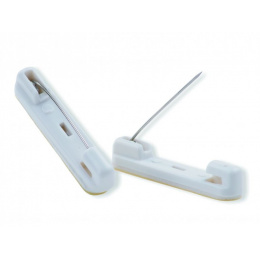 Plastový špendlík se samolepící zadní stranou, délka 32 mm. Slouží pro nalepení na zadní stranu jmenovky a následné uchycení jmenovky na oděv. 100ks/balení..