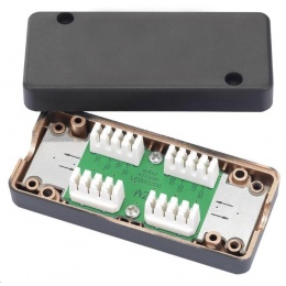 Propojovací box CAT6. Umožňuje propojit kabelové segmenty beze ztráty kvality vedení. Narážecí kontakty.