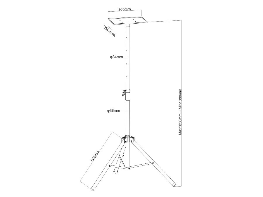 Stativ na projektor Fiber Mounts M9C53 Stativ na projektory s nastavením výšky od podlahy 108-185cm, polička 365x266mm, nosnost 8kg Podlahový stojan nejen na projektory s policí o rozměrech 365x266mm, u které si snadno nastavíte požadovanou výšku v rozmezí 108cm až 185cm od podlahy. Rychlé sestavení, bez potřeby jakéhokoliv nářadí. Stojan je ve složeném stavu velmi skladný a lehký, ideální i pro časté přenášení nebo převoz. Barevné provedení černé, záruka 3 roky. Technické údaje: nosnost 8kg nastavitelná výška od podlahy 1080-1850mm polička s rozměry 365x266mm snadné a rychlé sestavení bez nářadí barevné provedení černé záruka 3 roky.