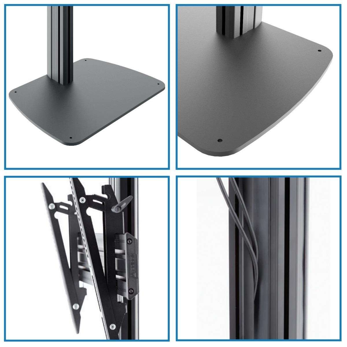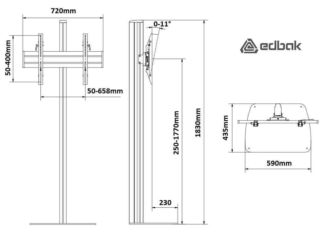 Stojan na Tv monitory Edbak STDV100Profesionální designový stojan na Tv a monitory 40-75", nastavitelná výška obrazovky 250-1770mm, náklon 0°/-11°, vedení kabeláže, VESA 75x75 až 600x400, nosnost 80kg.