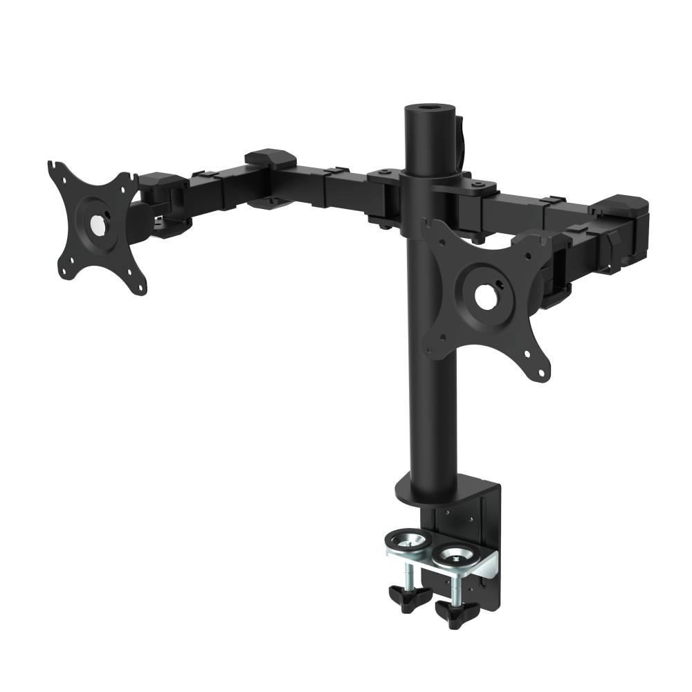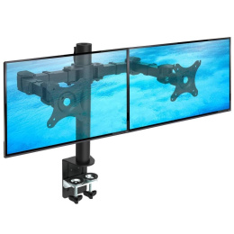Stolní držák na 2 monitory Ergosolid NF12Stolový držák na 2 monitory 10-30", otočný +/- 180°, sklopný +85°/-15°, pivot, nastavení výšky 20-34cm, délka ramen 36cm, VESA 75x75 a 100x100, spolehlivý stolní úchyt 20-100mm, nosnost 20kg.