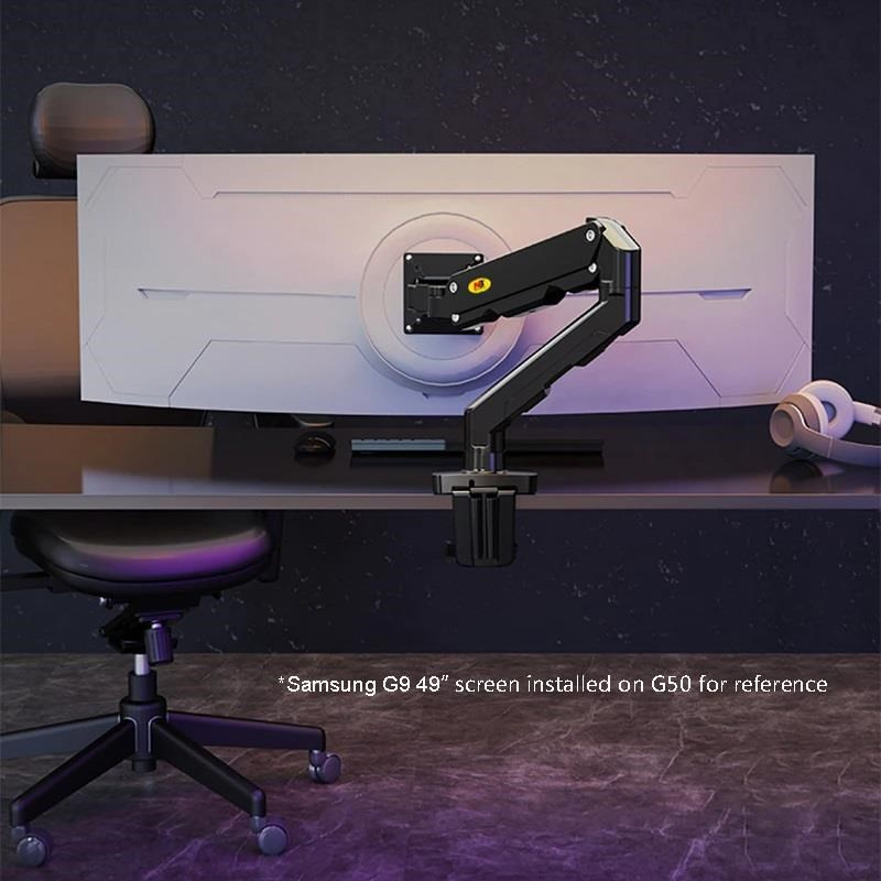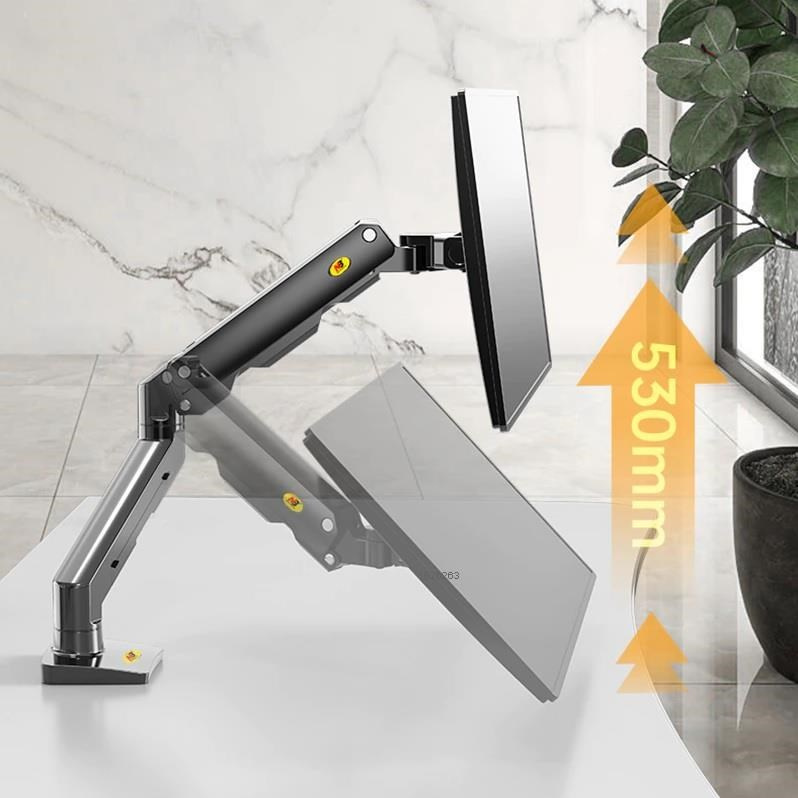 Stolní držák na širokoúhlý monitor Tv NB G60Profesionální stolní držák na monitor nebo Tv 27-45", otočný +/-180°, sklopný +60°/-15°, nastavitelná výška od stolu 190-475mm, nastavitelná vzdálenost 0-640mm, 1x port USB, 2 typy stolních úchytů, systém vedení káblů, VESA 75x75 a 100x100, nosnost 16kg.