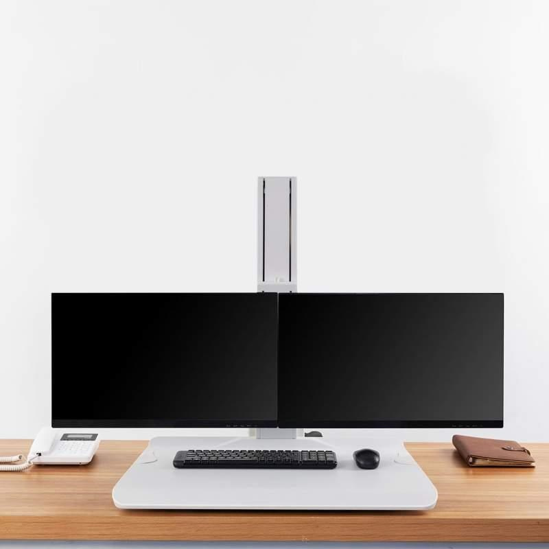 Stolní pracovní stanice pro 2 monitory Fiber Mounts ST15-2AWProfesionální stolní pracovní stanice na 2 monitory 19-27", pro práci vsedě nebo vestoje.