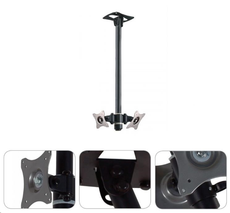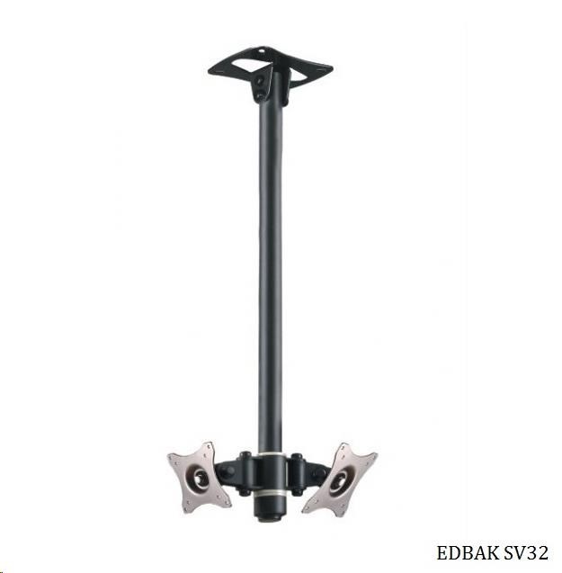 Stropní držák na 2 Tv monitory Edbak SV32Stropní držák pro zavěšení 2 televizorů nebo monitorů, nastavení výšky, otočení, náklon, funkce pivot.