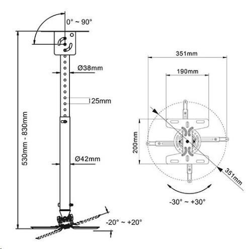 Stropní držák na projektory Fiber Mounts T718-2 černýStropní držák na projektory s nastavitelnou délkou 53-83cm, otočný, sklopný, univerzální na všechny typy projektorů, barva černá.