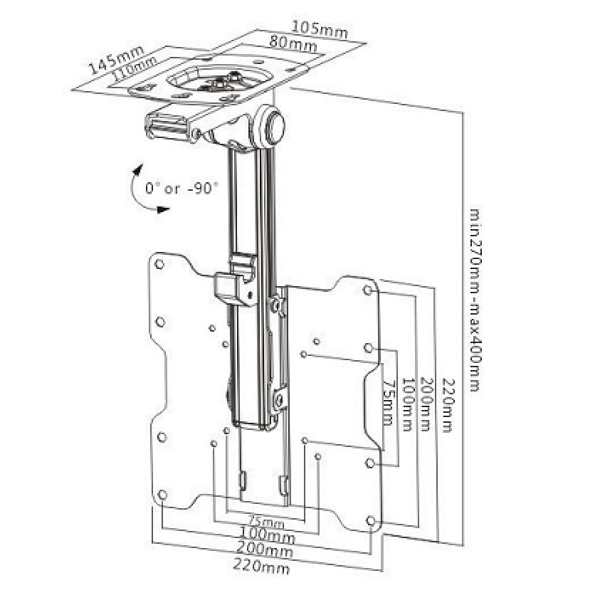 Stropní držák na Tv monitor Fiber Mounts T21Kvalitní stropní držák na Tv i monitory 15-43", nastavitelný náklon 0-90°, vhodný držák pro uchycení na šikmé podkrovky.