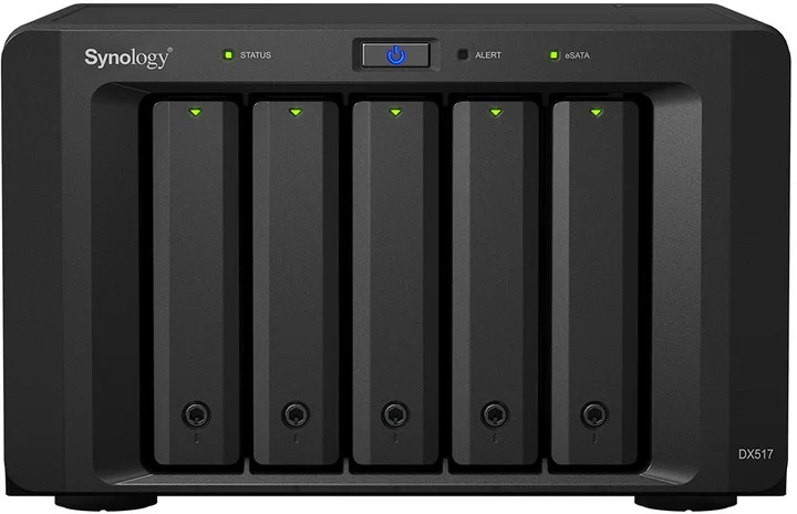 Modulová šachta pro snadné a rychlé přidání pěti dalších pozic pro disky k zařízení Synology DiskStation (DS1817+ a DS1517+). Zařízení DX517 podporuje SATA disky 2,5” i 3,5” (jak pevné disky, tak SSD) a představuje tak flexibilní řešení podporující průběžné rozšiřování svazku nebo sloužící jako cíl místní zálohy.