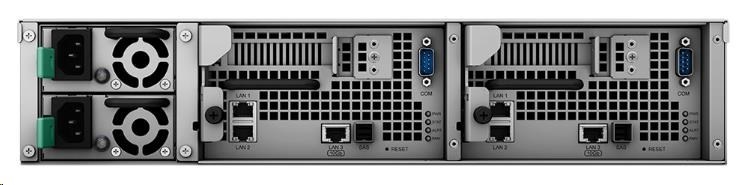 - Škálovatelnost: Standardně obsahuje 12 šachet disků SAS, pomocí dvou jednotek RXD1219sas lze rozšířit až na 500 TB.2