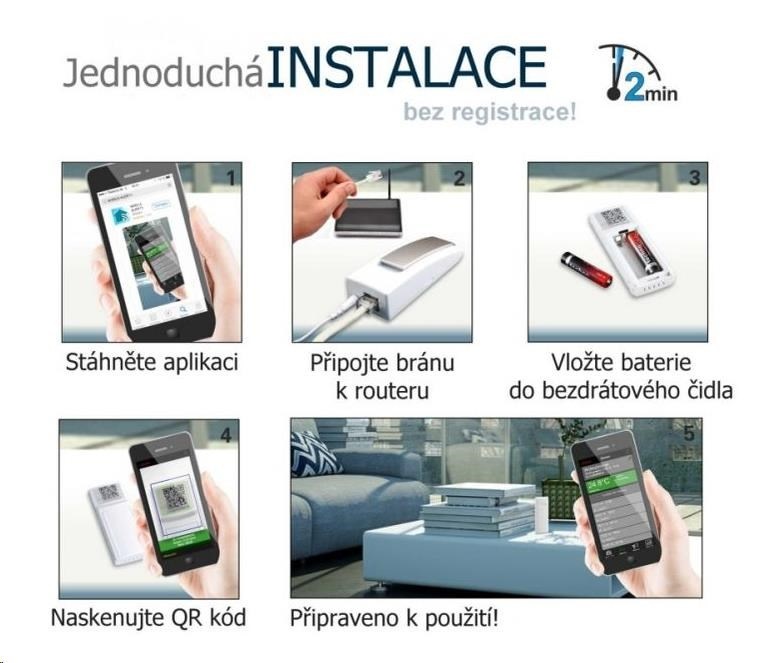 Tento domácí monitorovací systém Technoline MOBILE-ALERTS využívá k zobrazování veškerých dat vaše mobilní zařízení pomocí Internetu (smartphone, tablet). Stáhněte si aplikaci MOBILE- ALERTS z příslušného zdroje v závislosti na operačním systému, které vaše zařízení používá (Android 3.2 a novější - z Google Play, iOS 7 a novější - z Apple App Store). Tato startovací sada obsahuje bezdrátové čidlo pro měření teploty a bránu, která se připojí pomocí LAN kabelu s routerem pro přenos dat na Internet.
