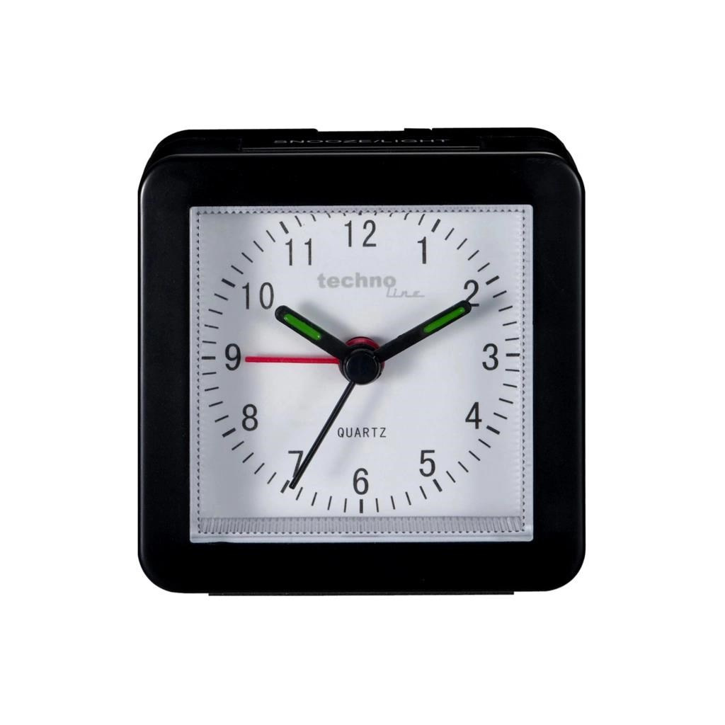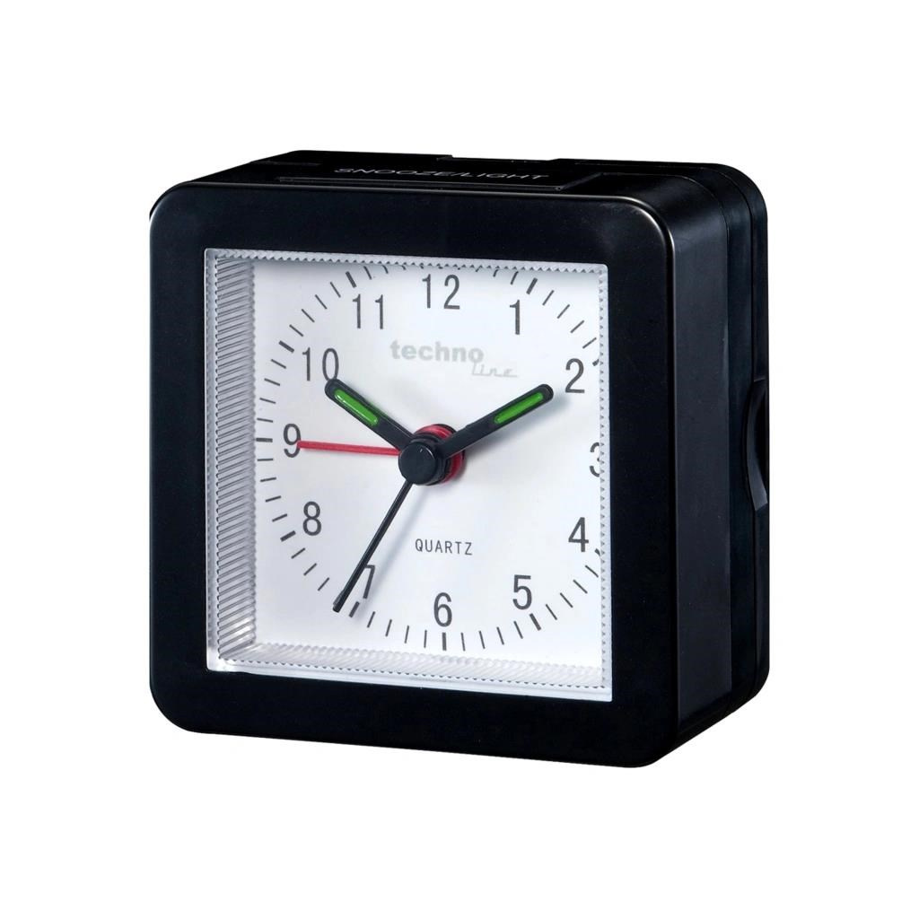 TechnoLine Modell SC analogový budík, černýAnalogový budík, čas řízený krystalem, materiál plast, buzení zvukovým signálem ( 8 sekund 1 pípnutí za sekundu, poté 8 sekund 4 pípnutí za sekundu, poté 8 sekund 4 silnější pípnutí za sekundu a poté stálé pípání), možnost opakovaného buzení (Snooze) po 4 minutách.