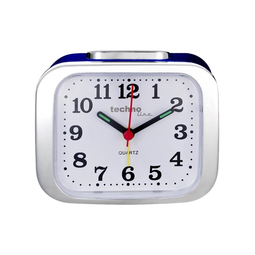 TechnoLine Modell XL analogový budík, modrýAnalogový budík, čas řízený krystalem, materiál plast, buzení zvukovým signálem ( 4 pípnutí za sekundu), nebo zvonkem, ciferník 86 x 73 mm, možnost krátkodobého osvětlení ciferníku.