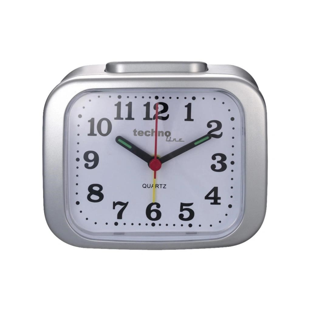 TechnoLine Modell XL analogový budík, stříbrnýAnalogový budík, čas řízený krystalem, materiál plast, buzení zvukovým signálem ( 4 pípnutí za sekundu), nebo zvonkem, ciferník 86 x 73 mm, možnost krátkodobého osvětlení ciferníku.