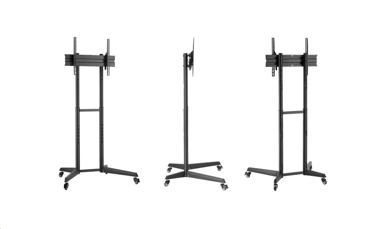 Tv stojan s kolečky, nastavením výšky a náklonu, na televize 37" - 70", výška 1285 / 1340 / 1395 / 1450 mm, náklon +5° / -12°, kolečka s aretací, podstava 871x678 mm, systém pro vedení kabeláže, instalační materiál, podporuje standardy VESA 100x100 až 600x400, nosnost 50 kg Kvalitní stojan na televize a monitory s naklápěním kolečky a nastavením výšky Fiber Mounts LUTAR-1 Potřebujete dát televizi nebo monitor na pojízdný stojan a nechcete utrácet majlant? Chcete mít možnost upravit si výšku obrazovky a mít možnost změnit úhel sklonu? Tak v tom případě pro Vás máme skvělé řešení: televizní stojan Fiber Mounts LUTAR-1, který vše splňuje na 100%. Pojízdný stojan s kvalitními kolečky s aretací, s výbornou stabilitou, který podporuje VESA standardy od 100x100 do 600x400 a spolehlivě unese zařízení s hmotností až 50 kg Vám umožní upravit výšku i náklon obrazovky. Konstrukce umožňuje skryté vedení kabeláže. Kvalitní vypalovaná černá barva. V balení naleznete montážní materiál. Na stojan poskytujeme záruku 5 let. Pojízdný stojan s nastavením výšky a náklonu Tv / monitoru Fiber Mounts LUTAR-1 Technické údaje: nosnost 50 kg podpora VESA 100x100 až 600x400 držák na televize / monitory 37" - 70" nastavitelná výška 1285 mm / 1340 mm / 1395 mm / 1450 mm nastavení náklonu obrazovky +5° / -12° podstava 871x678 mm pojezdová kolečka s aretací systém pro skryté vedení kabeláže kvalitní konstrukce barevné provedení černé záruka 5 let.