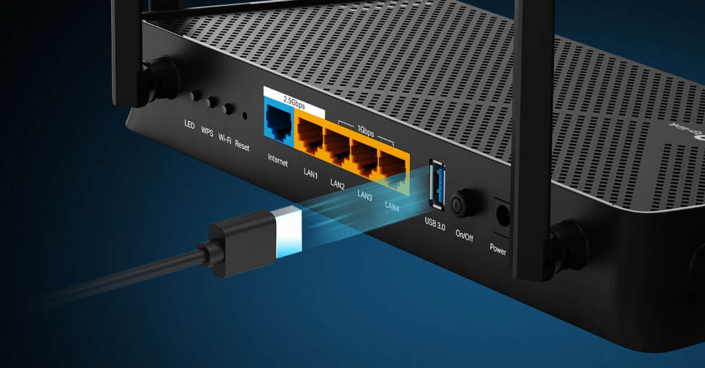 Jak můžete vidět, router má na těle vysoce praktický port USB 3.0 umožňující připojit externí disk a vytvořit si osobní cloudové úložiště, k němuž budete mít bezpečný přístup odkudkoli na světě.