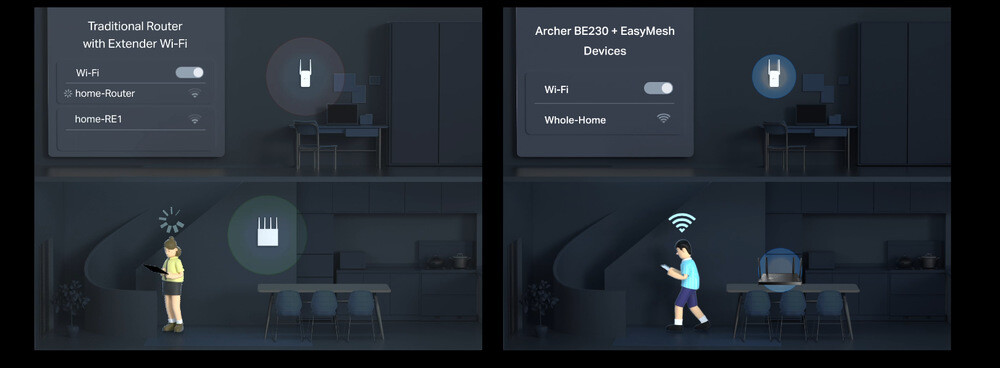 Router je kompatibilní s technologií EasyMesh, která představuje nejjednodušší cestu, jak vytvořit celoplošné Wi-Fi pokrytí celé domácnosti pomocí dalších routerů/extenderů.