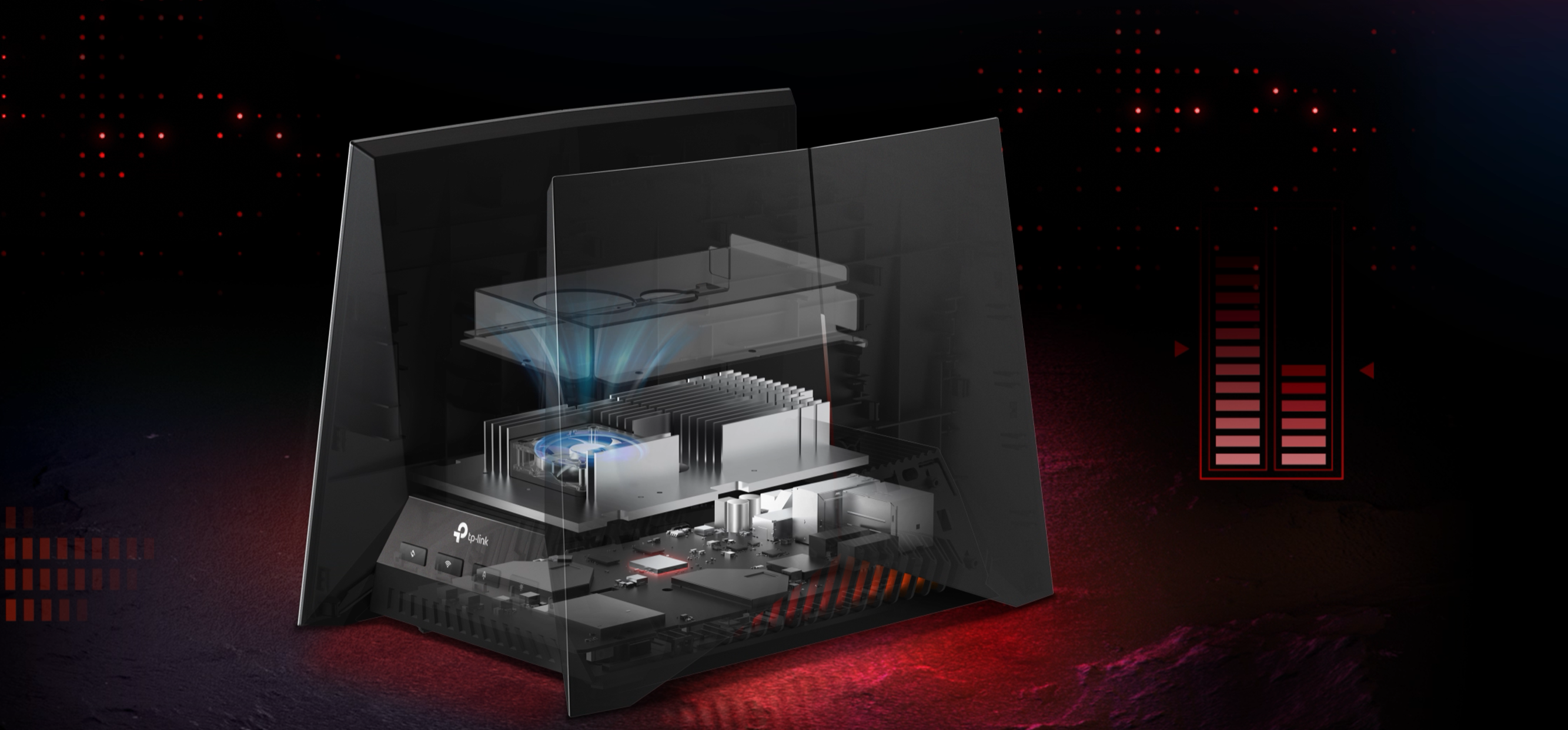 Komínová struktura routeru TP-Link Archer GE800 zajišťuje lepší odvod tepla a čtyřjádrový procesor je zárukou špičkového výkonu. Celkem 8 optimálně umístěných antén poskytuje větší kapacitu, silnější a spolehlivější připojení a méně rušení.