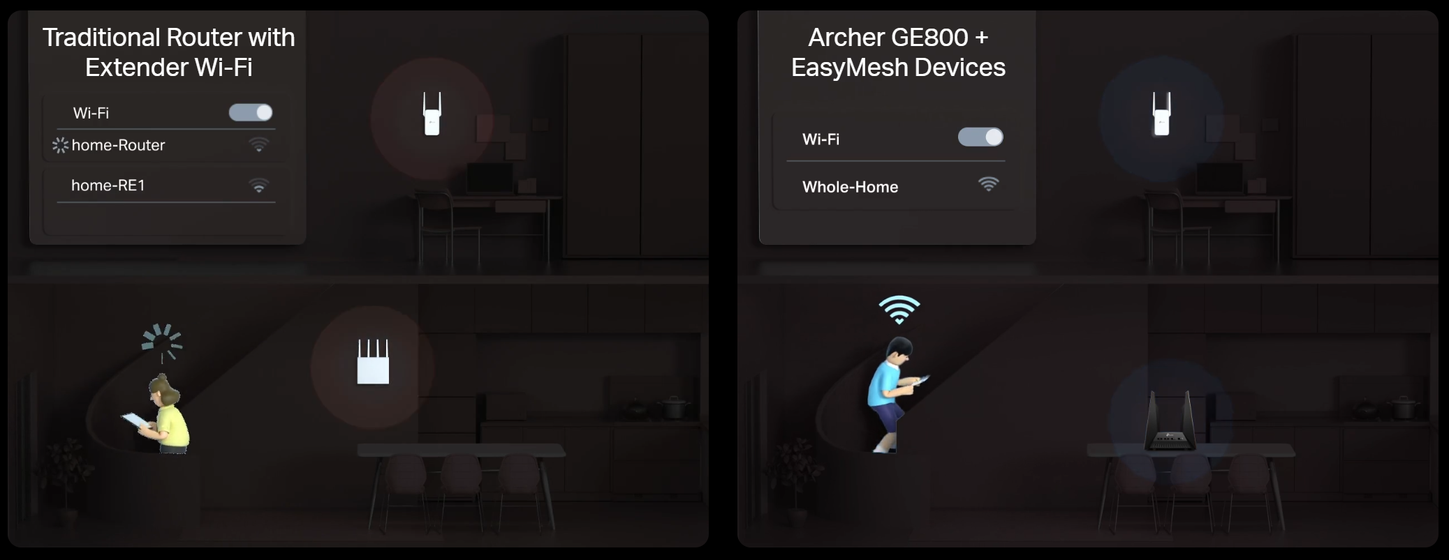 TP-Link Archer GE800 je kompatibilní s EasyMesh. Pokud se tedy v domácnosti potýkáte s mrtvými zónami bez signálu, stačí jednoduše přidat další router nebo extender kompatibilní s technologií EasyMesh a rozšířit tak multigigabitovou WiFi mesh síť pro celou domácnost.