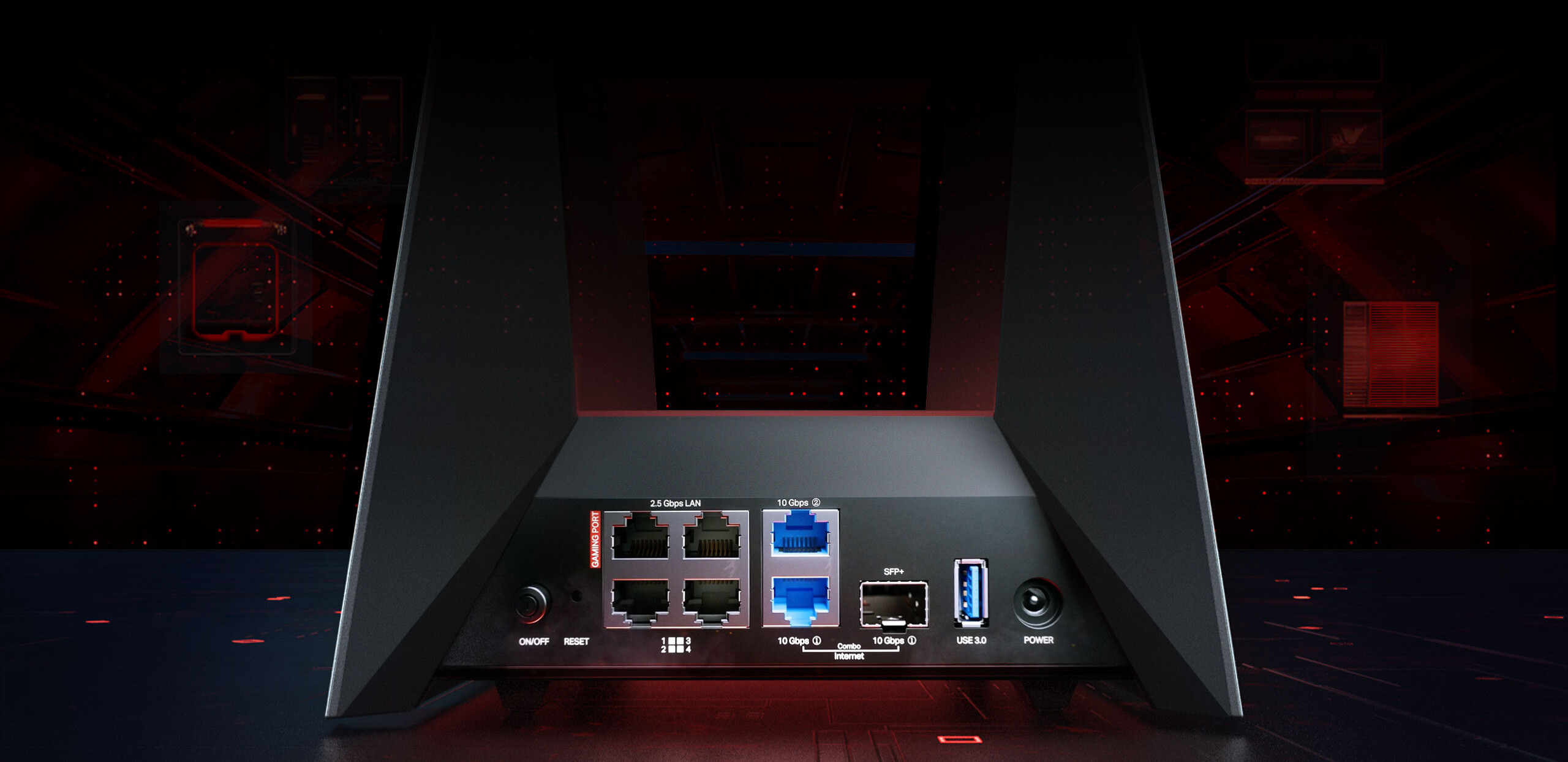 - Disponuje dvěma 10G porty WAN/LAN a čtyřmi 2,5G LAN porty