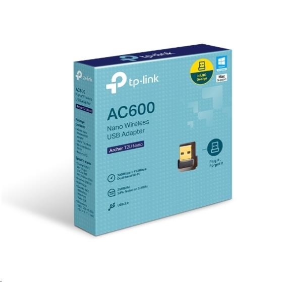 TP-Link Archer T2U Nano WiFi5 USB adapter (AC600,2,4GHz/5GHz,USB2.0)Typ aktivního prvku:Adaptéry USB; Frekvenční pásmo (GHz):2,4, 5, 2,4 + 5 (Dual Band); Podporované standardy:802.11b/g, 802.11b/g/n, 802.11b, 802.11a, 802.11a/n, 802.11g, 802.11n, 802.11ac; Zabezpečení:WEP 64bit, WEP 128bit, WPA-PSK, WPA2-PSK; Typ antény:Integrovaná; Použití:Přenosné.