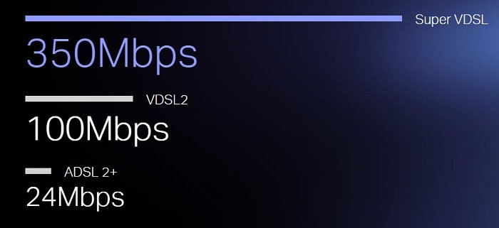 Archer VR2100 je vybaven technologií Super VDSL (profil VDSL2 35b), tedy nejnovější generaci technologie DSL. Downstream je zvýšen až o 350 Mbps, 3,5x rychlejší než jeho předchůdce VDSL2. Integrovaný port DSL také podporuje všechna standardní připojení DSL (Archer VR2100 je kompatibilní s VDSL2, ADSL2 +, ADSL2 a ADSL).