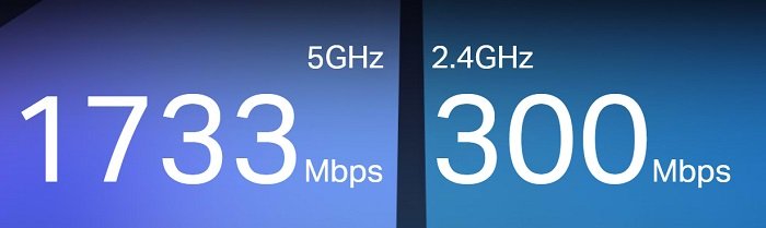 - Rychlost signálu: až 1733 Mbps na 5 GHz, až 300 Mbps na 2.4 GHz