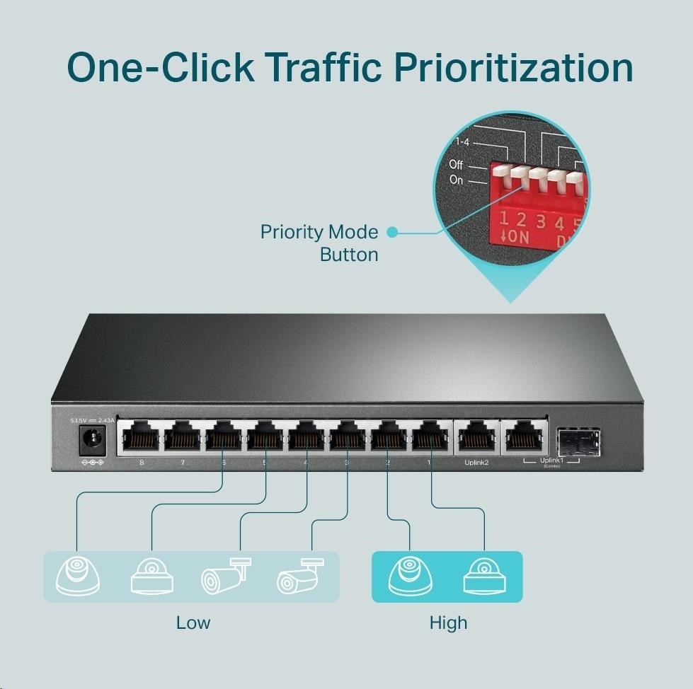 Diskuze k produktu TP-Link CCTV switch TL-SG1210MP (8xGbE, 1xGbE uplink, 1xGbE/SFP combo uplink, 8x PoE+, 123W, fanless)